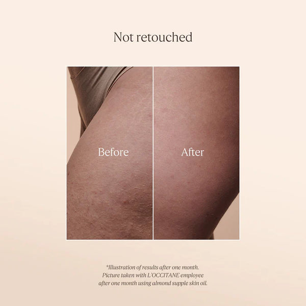 Formulated with more than 50% almond oil, this light, fine Body Oil effectively helps skin feel supple and smoother. Skin feels nourished thanks to the ideal combination of almond oil, rich in omega 6, and camelina oil, rich in omega 3. This balance provides suppleness and comfort to the skin. Applied with a spray, this oil melts into the skin, enveloping it with a subtle and mouthwatering scent of fresh almonds while leaving a delicious satiny-smooth finish.The almond nut, which grows protected in a beautifully soft and green velvet shell, is renowned for its ability to soften and smooth the skin. L’OCCITANE is committed to purchasing almonds from producers in the South of France so that the almond tree, which had long been forgotten in the region, once again becomes a familiar element in the Provençal landscape.